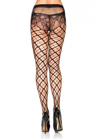 Seamless trellis net pantyhose with lace panty Black