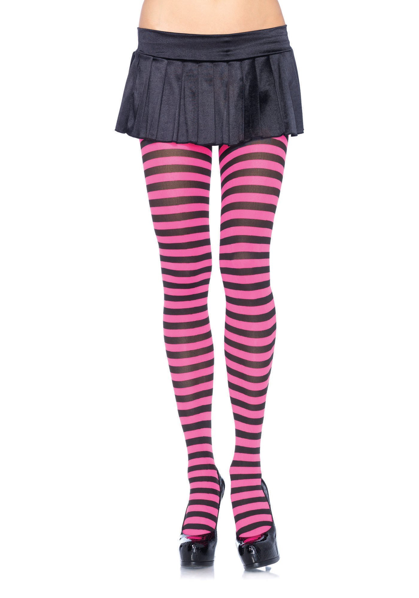 Black and Neon Pink Striped Nylon Tights.