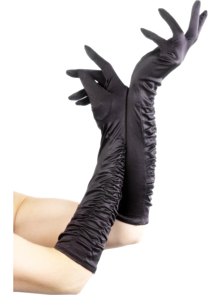Temptress ruched elbow high satin gloves.