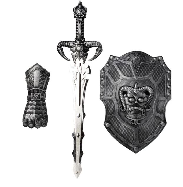 Bring a legendary, medieval-inspired look to your costume or display with this Fantasy Weapon Set. Featuring a detailed sword, matching shield, and armored-style gauntlet, this set is designed to create a bold and realistic appearance for themed events, cosplay, stage performances, or decorative collections. Each piece showcases intricate detailing for an authentic fantasy aesthetic.