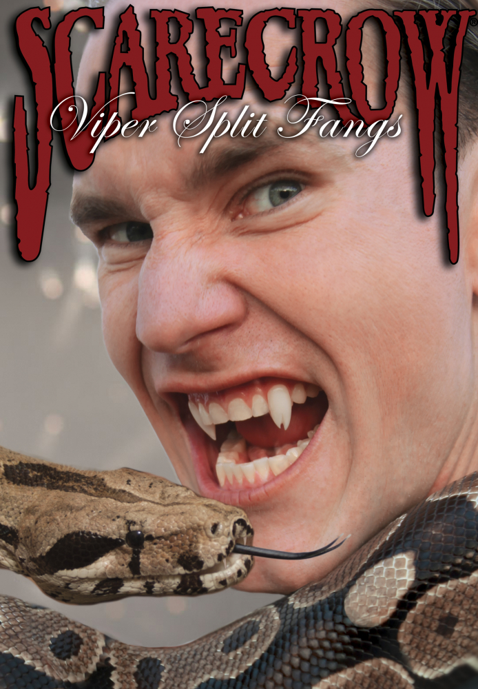 Viper Split Deluxe Vampire Fangs - Each fang cap is split into two prongs. They may fit either canines and/or incisors or bottom teeth. Fast, easy, comfortable, and totally realistic.