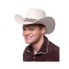 Beige Western Cowboy Hat with brown and white sewed detailing.