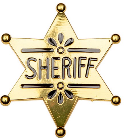 Transform from a Cowboy to a Sheriff with this Sheriff Badge. It features a gold Sheriff Badge which pins to your top. Protect the wild west from any crime when you become the next Sheriff in town!
