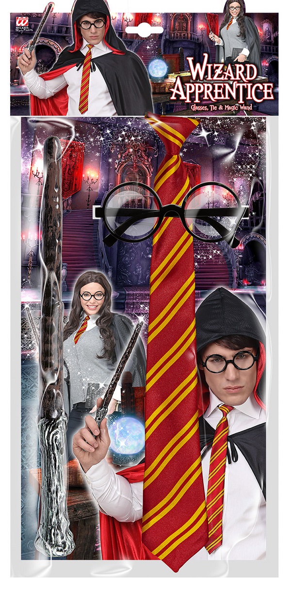 Practice your best magic tricks with our Wizard Apprentice Kit. This magical kit includes a tie, glasses and a wand.