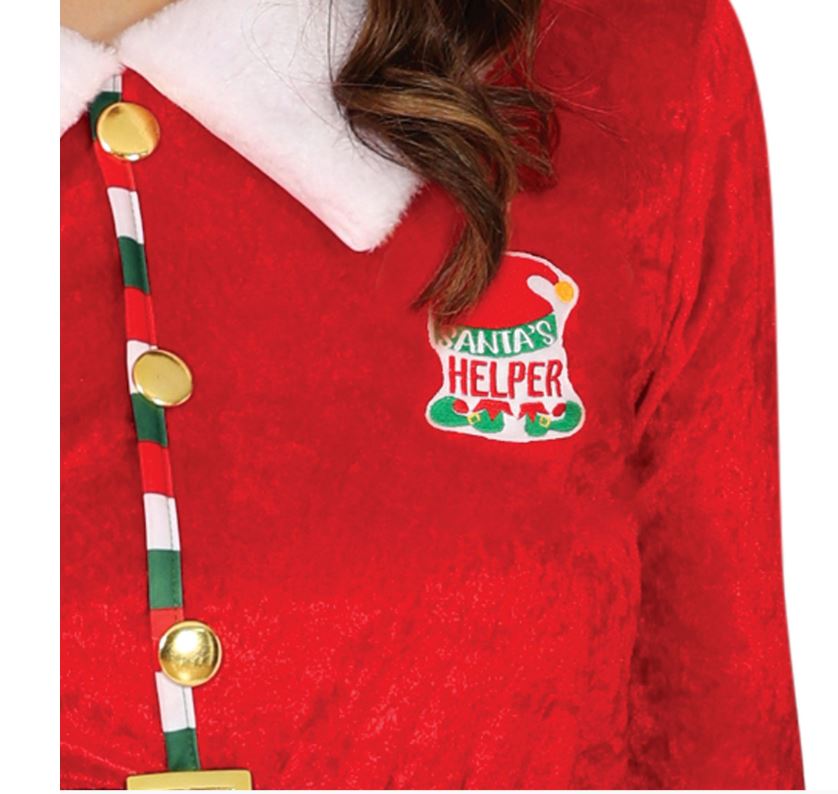 The Santa Helper Ladies Costume is the perfect outfit for spreading holiday cheer. This festive ensemble includes a festive hat, tunic, belt, skirt, and legwarmers. Get into the spirit of the season with this fun and stylish costume. Get ready for the holidays with the Santa Helper Ladies Costume! Perfect for spreading Christmas cheer at parties, events, or even while handing out presents! Make the season bright with this fun and colorful costume.