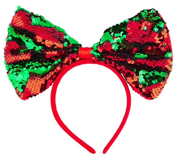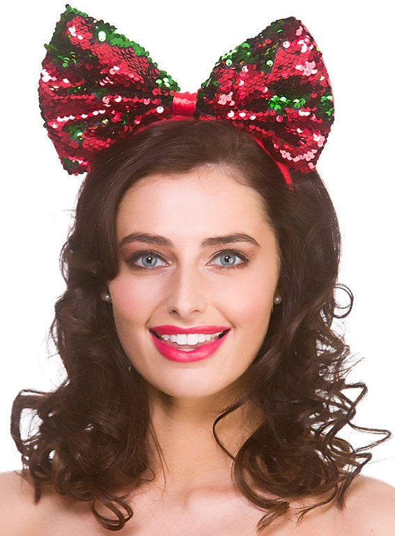 Sparkle this Christmas with our Xmas Flip Sequin bow in red and green on a red headband.