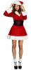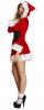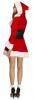 The Fever Santa costume includes a red velour dress with attached hood with white fur trim and white bauble. Cuffs are also white fur.