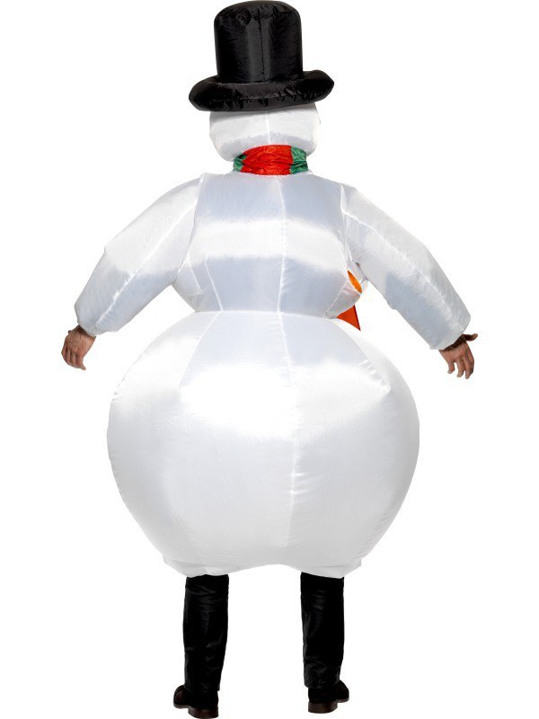 Have some fun this Christmas with our Inflatable Snowman costume. This self inflating costume includes a white suit with a red and green scarf and black hat.
