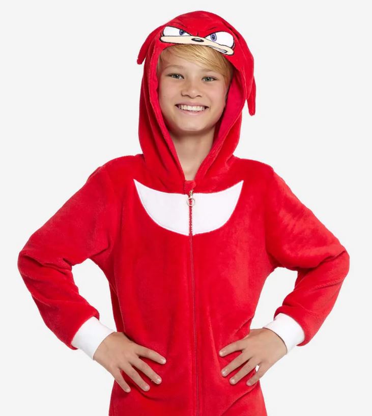Let your child bring their favorite Sonic the Hedgehog character to life with this Knuckles Kids Onesie! Made from ultra-soft fleece, this cozy red onesie is designed for comfort, play, and fun. Featuring Knuckles’ signature face on the hood, it’s perfect for costume parties, Halloween, pajama nights, or everyday loungewear.