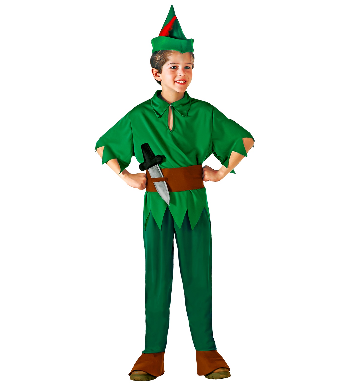 Let your child's imagination soar with the Neverland Peter - Kids costume, featuring a delightful green coat, pants with shoe covers, hat and belt with feather for a magical playtime experience.