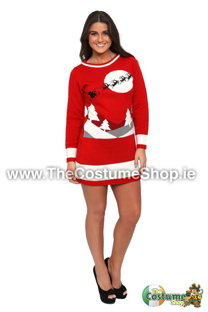 Ladies Sleigh Jumper is ideal for your next big Christmas event. This cheesy Jumper is perfect to wear with a pair of leggings or tights. Jumper is red in colour with red and white sleeves, an oval shaped neck line and a Snowman applique pattern at the front.