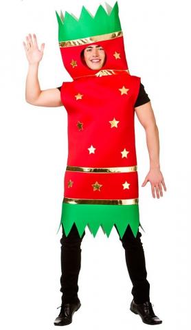Xmas Cracker costume includes a red and green full tabard with gold stars imprinted on it.