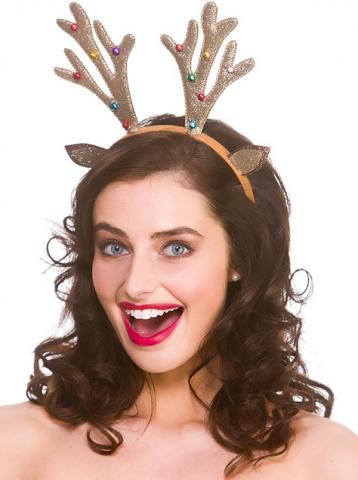 Sparkle at your next Christmas event with our Glitter Reindeer Antlers on a headband.