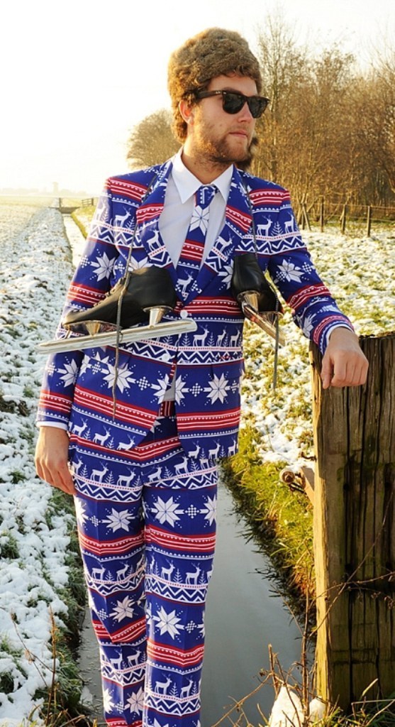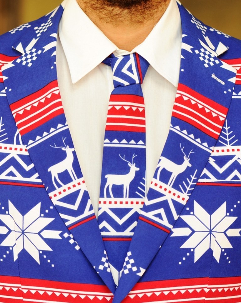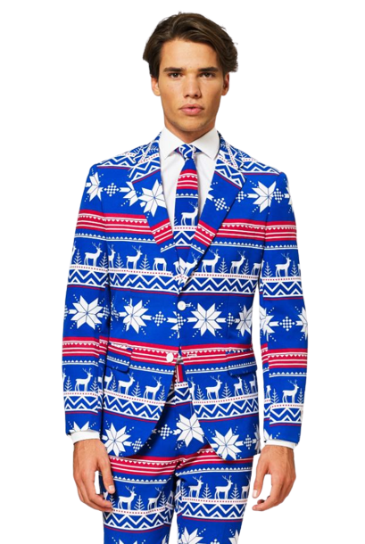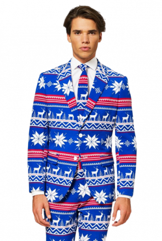 Get the festive feeling with our The Rudolph OppoSuit. Included in this seasonal look is a printed suit jacket with matching trousers and tie.