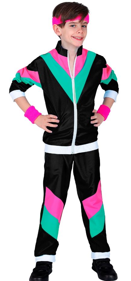 This Kids Shell Suit includes an 80's style tracksuit top and matching bottoms.
