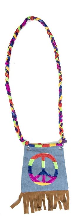 The perfect Hippie Bag to match your costume, this denim look bag has a lovely plaited handle, fringe detail and is the perfect size to hold your phone, purse and keys.
