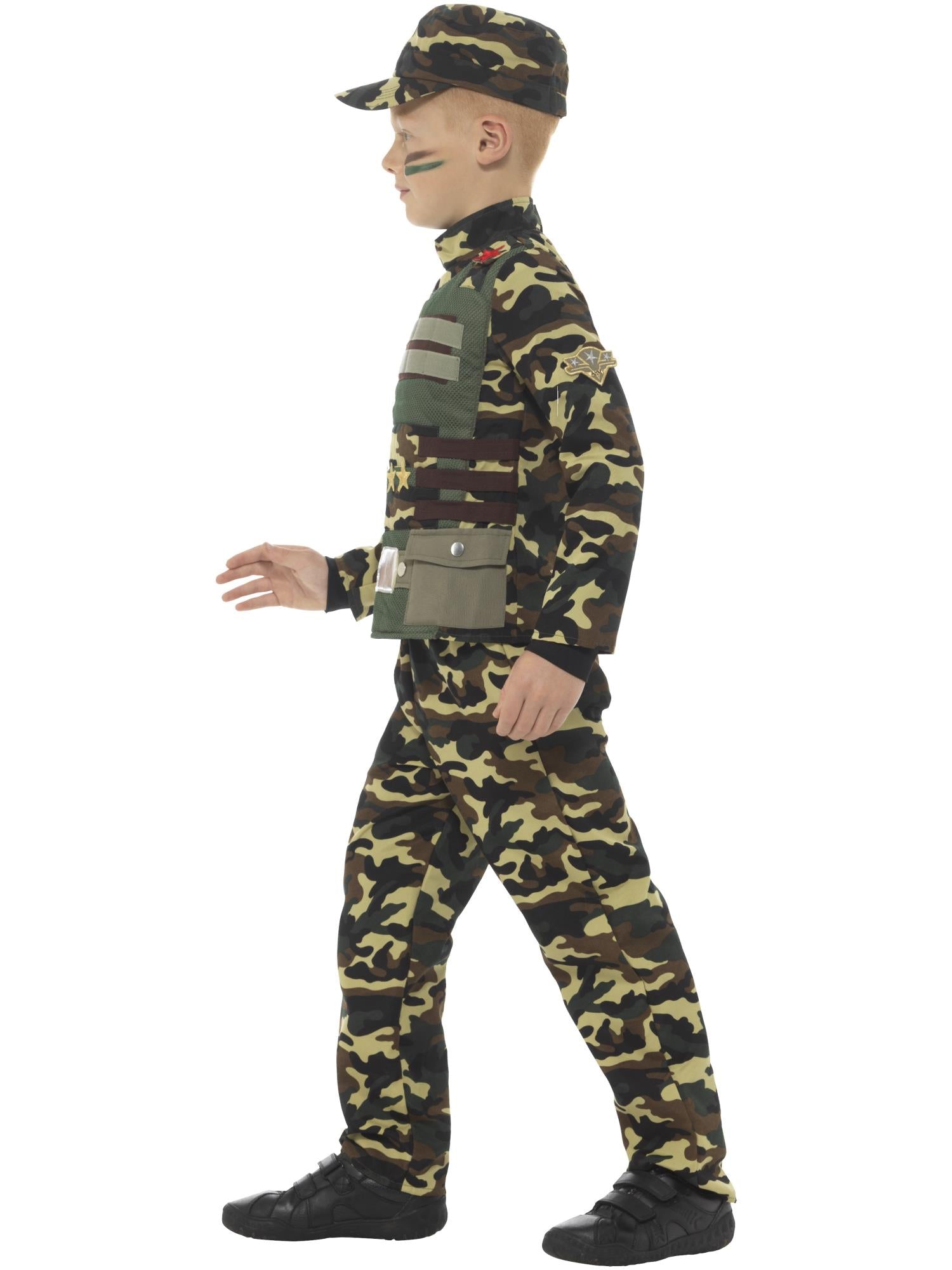 Camouflage Military Boy Costume – Green with Top, Trousers & Hat — ready for action, adventure, and very important backyard missions.