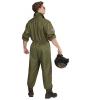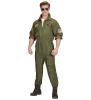Included is a khaki green pilot jumpsuit with pockets and badges on the chest and arm.
