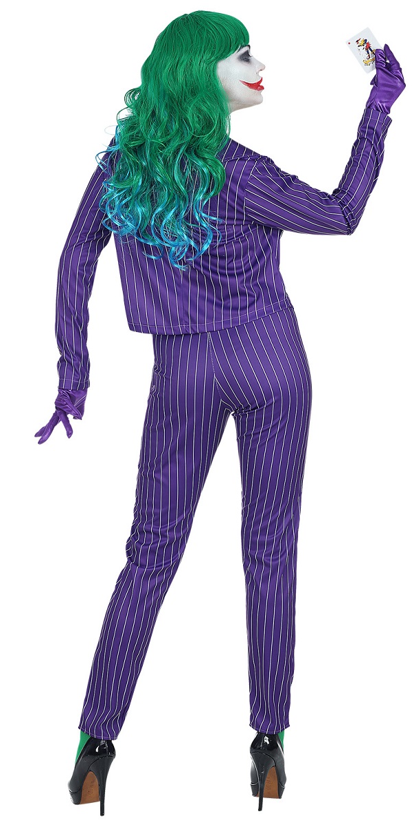 Be the joker in the pack with our Mad Joker Costume. This costume includes striped jacket with attached shirt front and waistcoat and a pair of pinstriped trousers. To complete the look a pair of gloves are also included.