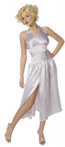 Blonde Starlet Costume includes a white satin halter neck dress.
