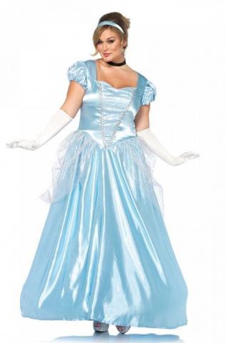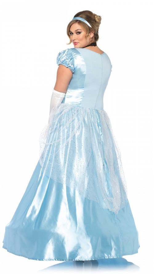 Plus Size Classic Cinderella costume includes a long satin ball gown with glitter tulle accents and a satin choker. To complete the Princess look a headband is also included.