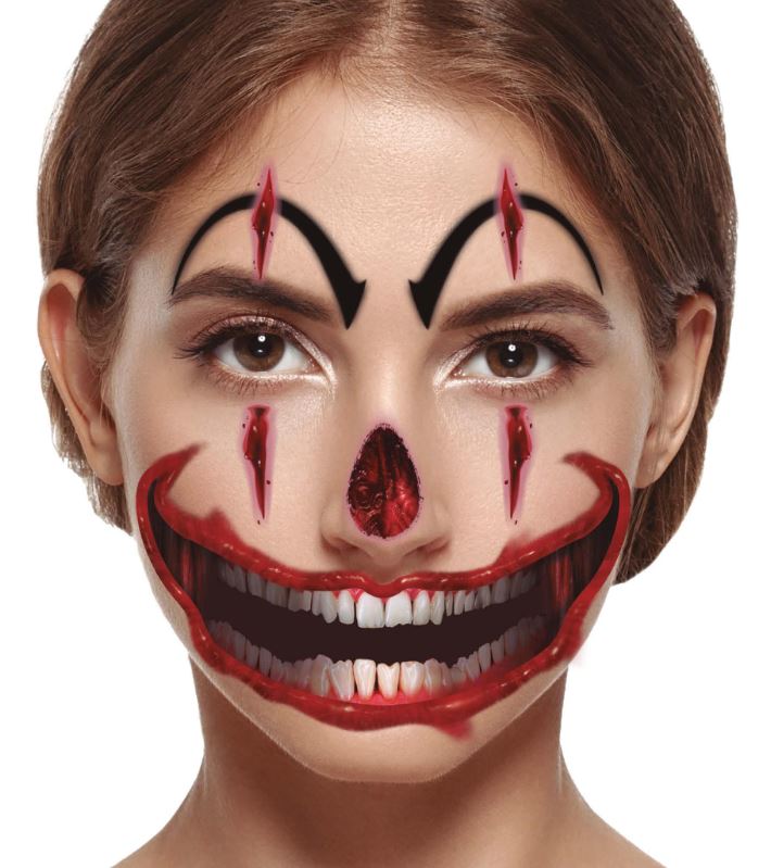 With vibrant patterns including exaggerated clown makeup, tear marks, and playful shapes, these tattoos give you an instant, dramatic transformation. Easy to apply and remove, they provide a mess-free alternative to face paint, making them ideal for parties, cosplay, or costume events.
