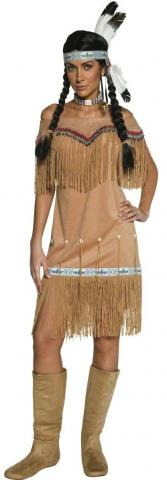 Plus Size Authentic Western Indian lady costume consists of faux suede fitted dress with flattering fringe detailing.