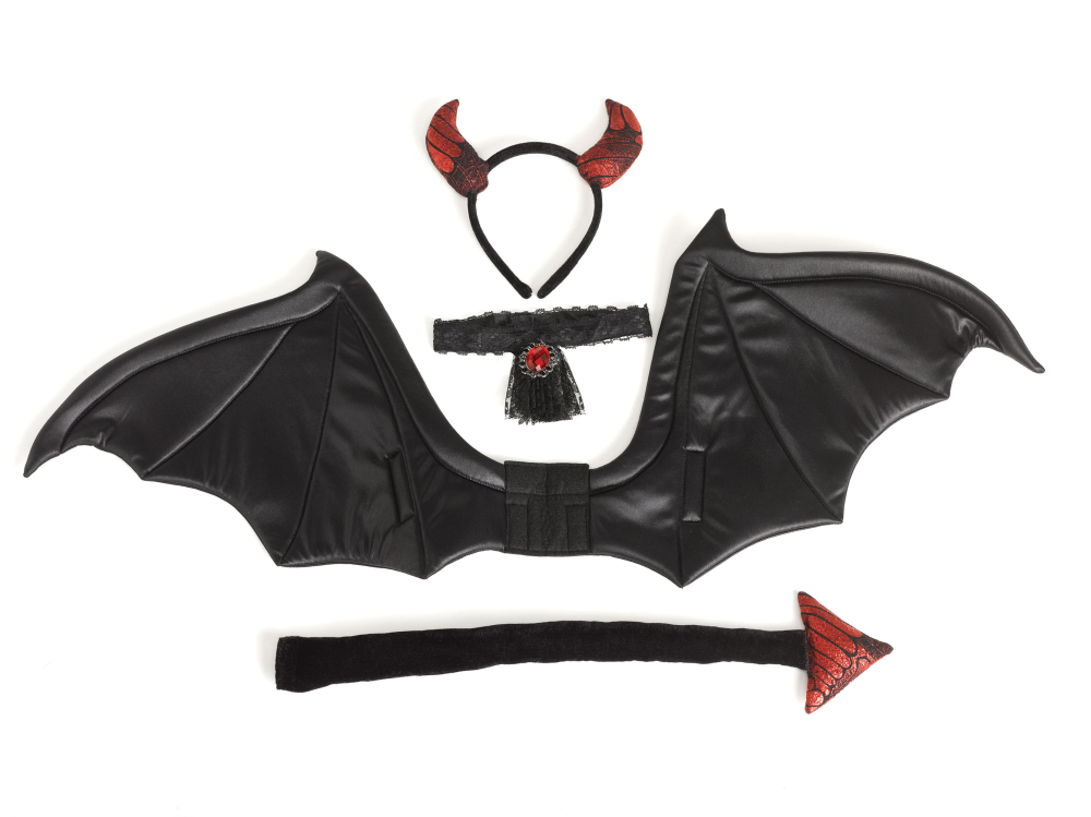 With a fiery red dress, playful tail, headband with devil horns, jabot, and wings, this outfit is ready for trick-or-treating, parties, or stirring up a bit of harmless Halloween chaos. Adorably wicked and devilishly fun!