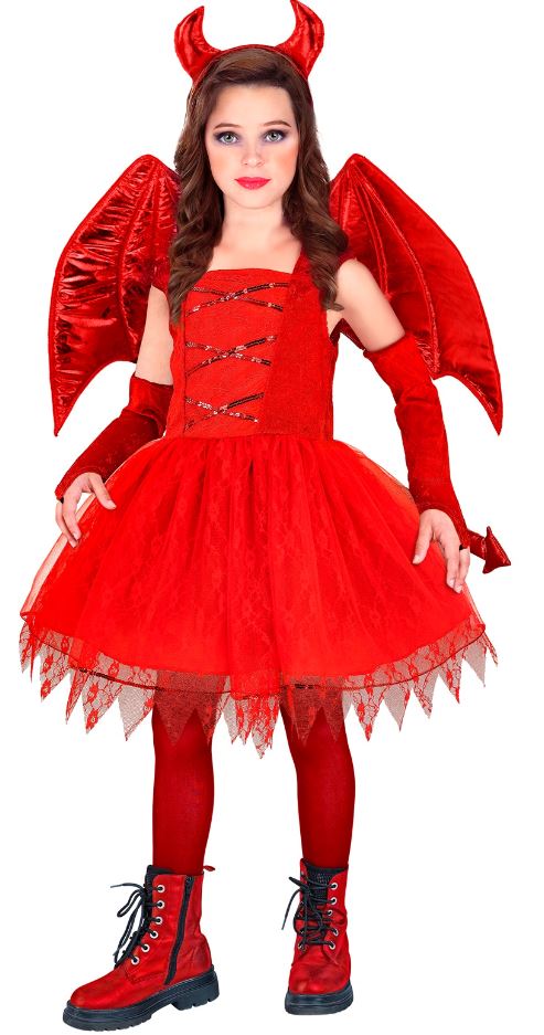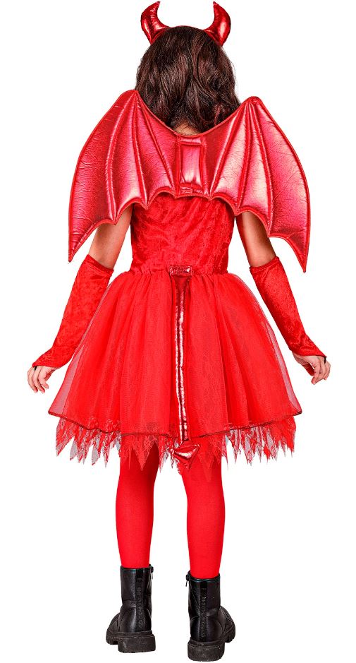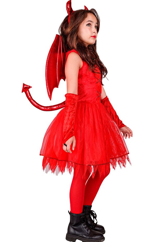 Included in this costume is a dress, tail, wings horns and fingerless gloves.