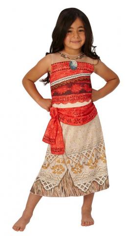 Kids Disney Moana Classic costume includes a printed dress with an attached sash. The dress also features a printed necklace.