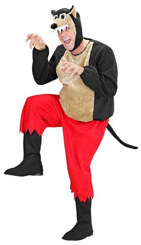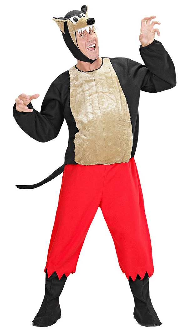 Also includes soft black boot covers and of course the headpiece with wolf facial features; as well as big ears, big eyes, big nose and sharp teeth (all the better for eating you my dear).