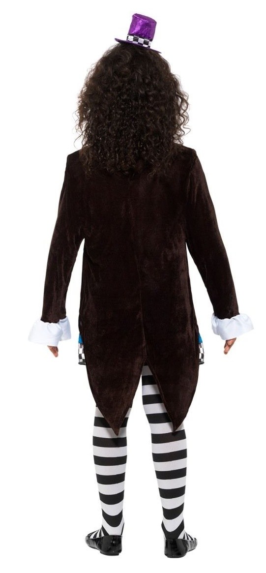 This Tween Little Miss Hatter Costume includes a multi-coloured dress with an attached jacket and waistcoat. This cute costume also includes a black and white cravat.