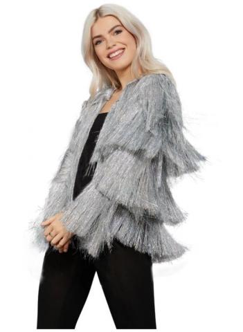 Turn heads and sparkle at any event with the Fever Tinsel Silver Festival Jacket. This stunning jacket is designed with shimmering silver tinsel fringe, perfect for making a bold fashion statement at festivals, parties, or any occasion where you want to stand out. Its reflective, metallic design adds a touch of glam to your outfit, ensuring you’re the life of the party. Whether you’re dancing at a music festival or showing off your unique style, this jacket is the ultimate go-to for anyone looking to embrace fun and fearless festival fashion.