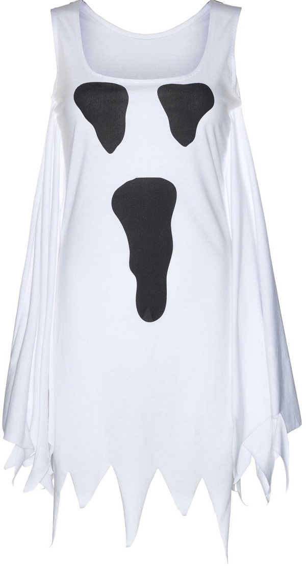 White and black Jersey Ghost Dress with elastic wrist bands.