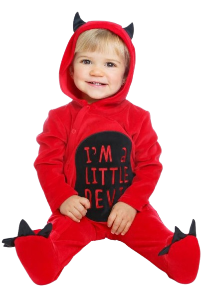 This Baby Devil Costume features a cozy jumpsuit with a hood, turning your little angel into the sweetest little hell-raiser. Perfect for Halloween photos, parties, or just causing mischief in the playpen.