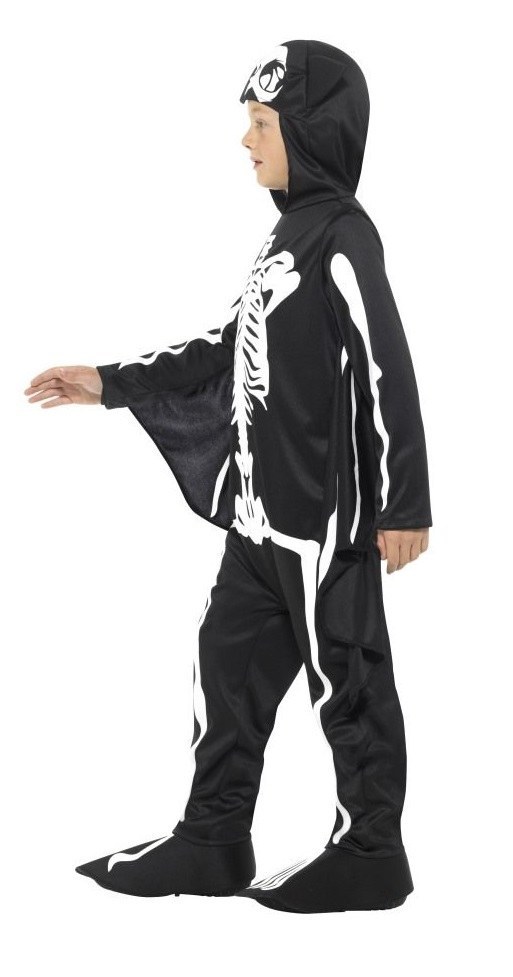 This Tween Bat Skeleton Costume includes a skeleton print hooded bodysuit with attached bat wings.