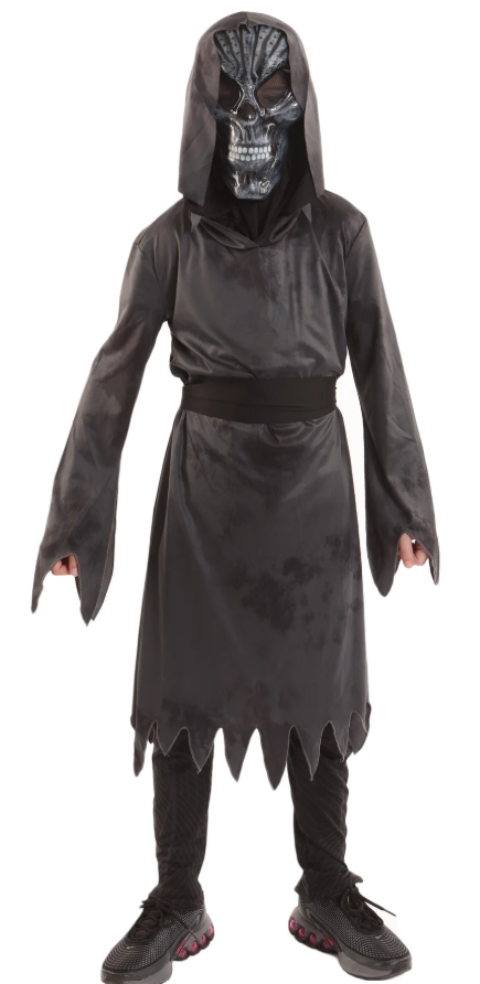 Get your Teen ready for trick-or-treating with the Ghastly Ghoul Costume for tweens. This spooky ensemble features tattered robes, a skeleton mask, and haunting details for a truly frightening Halloween look.