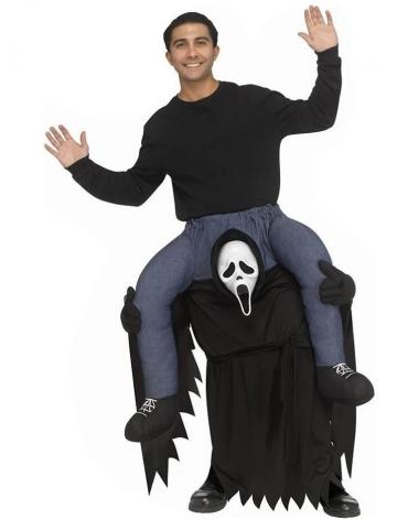 This officially licensed Ghost face costume features the iconic white mask and black robe, but with a hilarious twist - it includes false human legs to create the illusion that you are being carried by the creepy killer!
