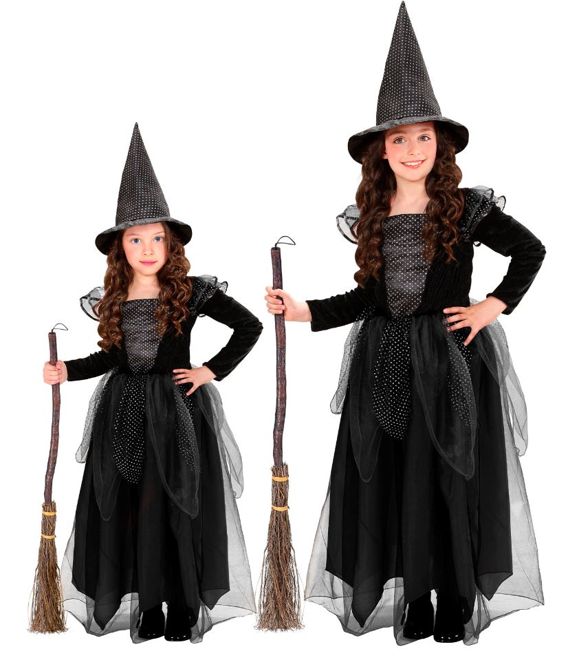 Equip your child with the Kid's Witch Costume - Dress & Hat for a bewitching Halloween look. This set includes a classic witch dress and a pointed hat for a complete and spooky ensemble. Perfect for trick-or-treating fun! Costume Included is a black witches dress with a Black pointed witches hat.