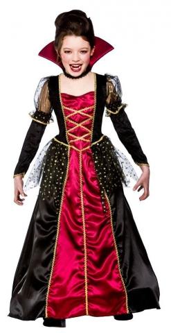 Tween Princess Vampira costume includes a deluxe dress with mesh and sequin detail and a hooped petticoat. Costume also includes a stand up collar.