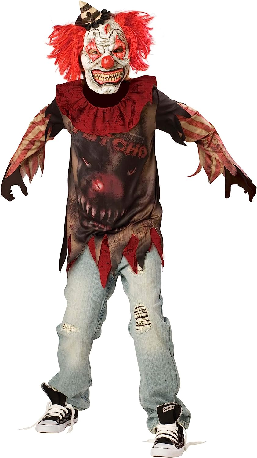 To complete this spooky look a laughing clown mask with attached hair and hat is included.