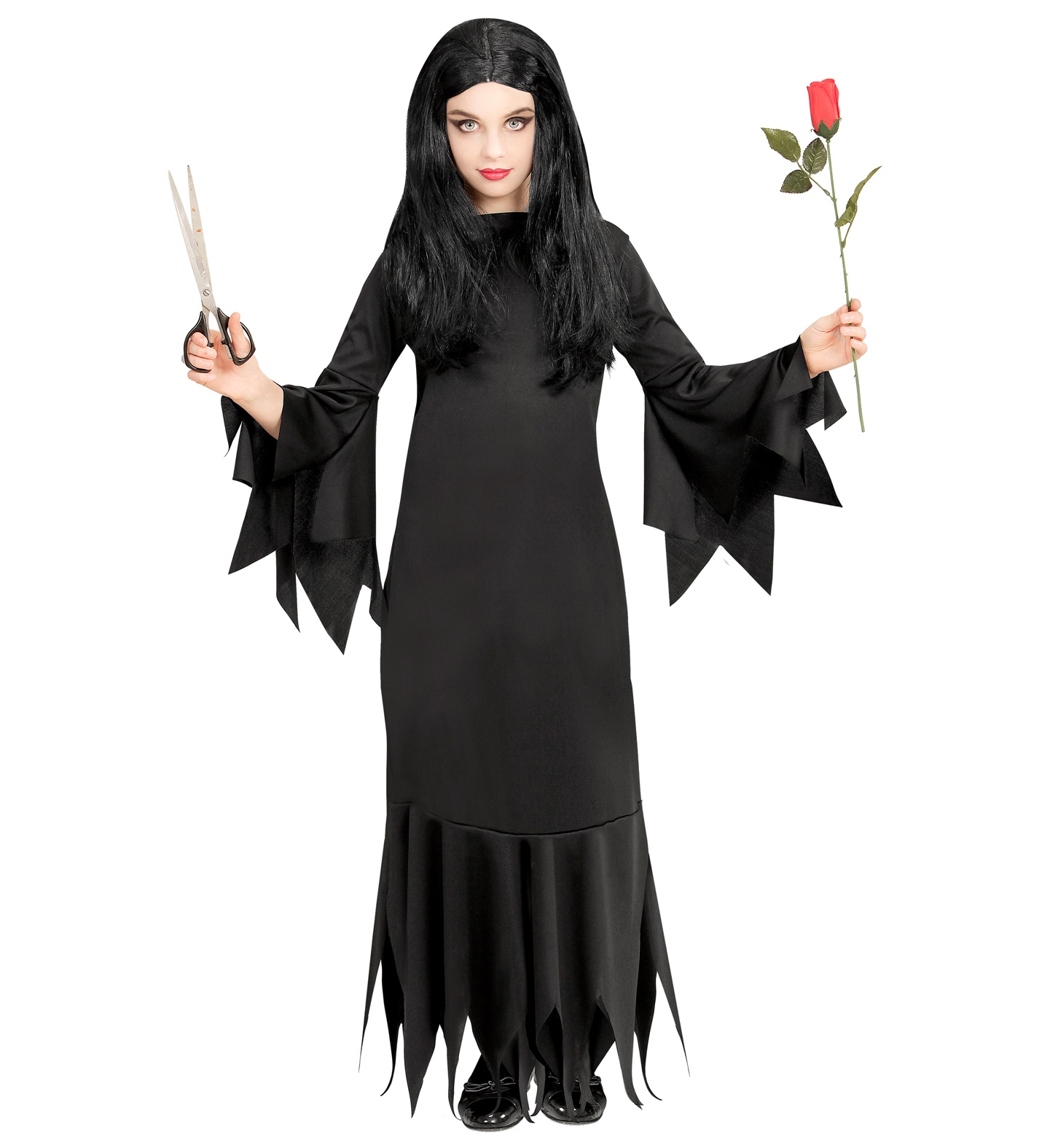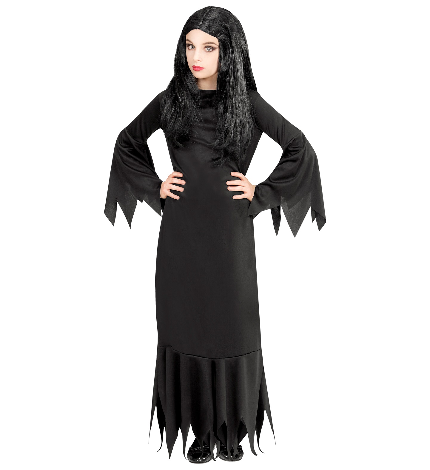 Unleash your inner darkness with the Tween Mortisia Girl Costume. Featuring a classic black dress this costume is a sophisticated choice for any tween looking to stand out at any event.