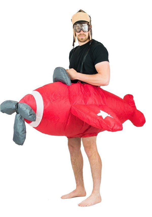 Adult Inflatable Plane Costume includes a one piece inflatable Plane suit and a fan to inflate the costume. Requires 4 x AA Batteries (not included)