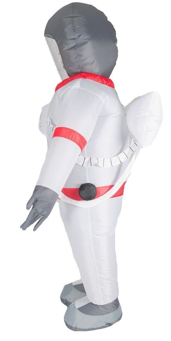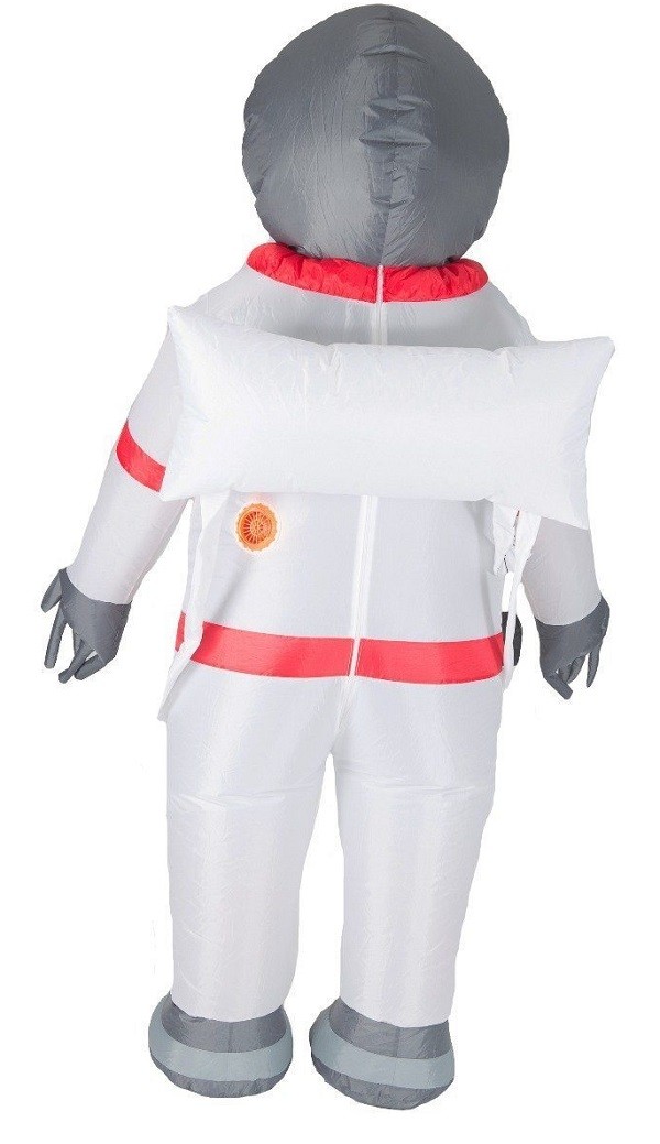 Adult Spaceman Inflatable Costume includes a one piece inflatable Spaceman suit and a fan to inflate the costume. Requires 4 x AA Batteries (not included)