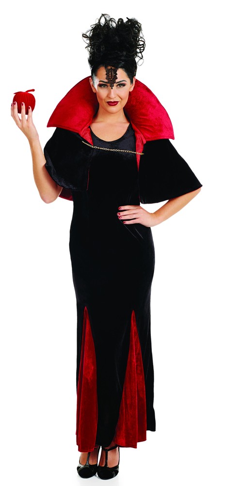 Queen Of Evil costume includes a long black and red velour dress. Costume also includes a cape with a stand up collar. Sink your teeth into this vampire look by adding some fake blood and face-paint.