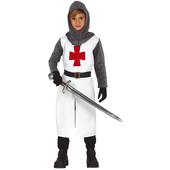 Dress up as a medieval knight with our Knights Templar Costume. Included in this costume is a white casque with printed red cross and chainmail style sleeves. The costume also includes a matching hood.