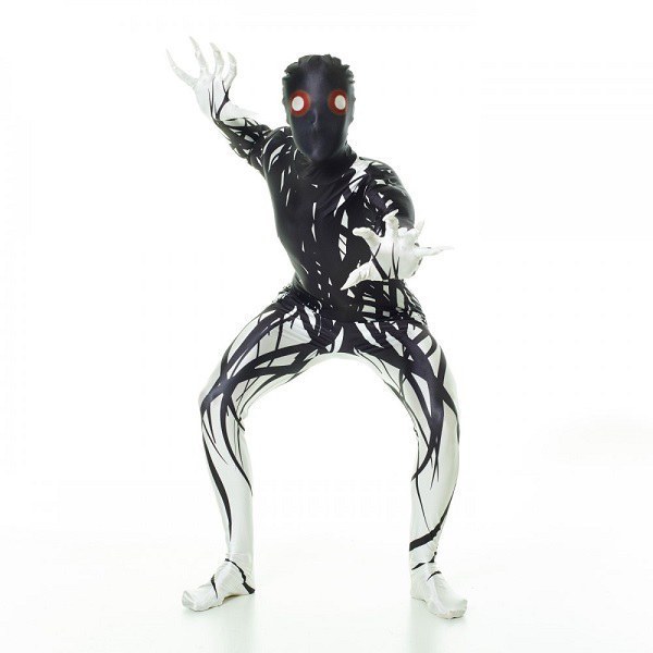 The Zalgo Morphsuit is a printed suit with attached mask and pointed hands.
