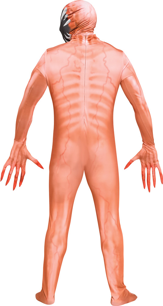The Pit Dweller Costume includes a creepy printed full-body jumpsuit with freaky stuffed fingers and a matching hooded mask.