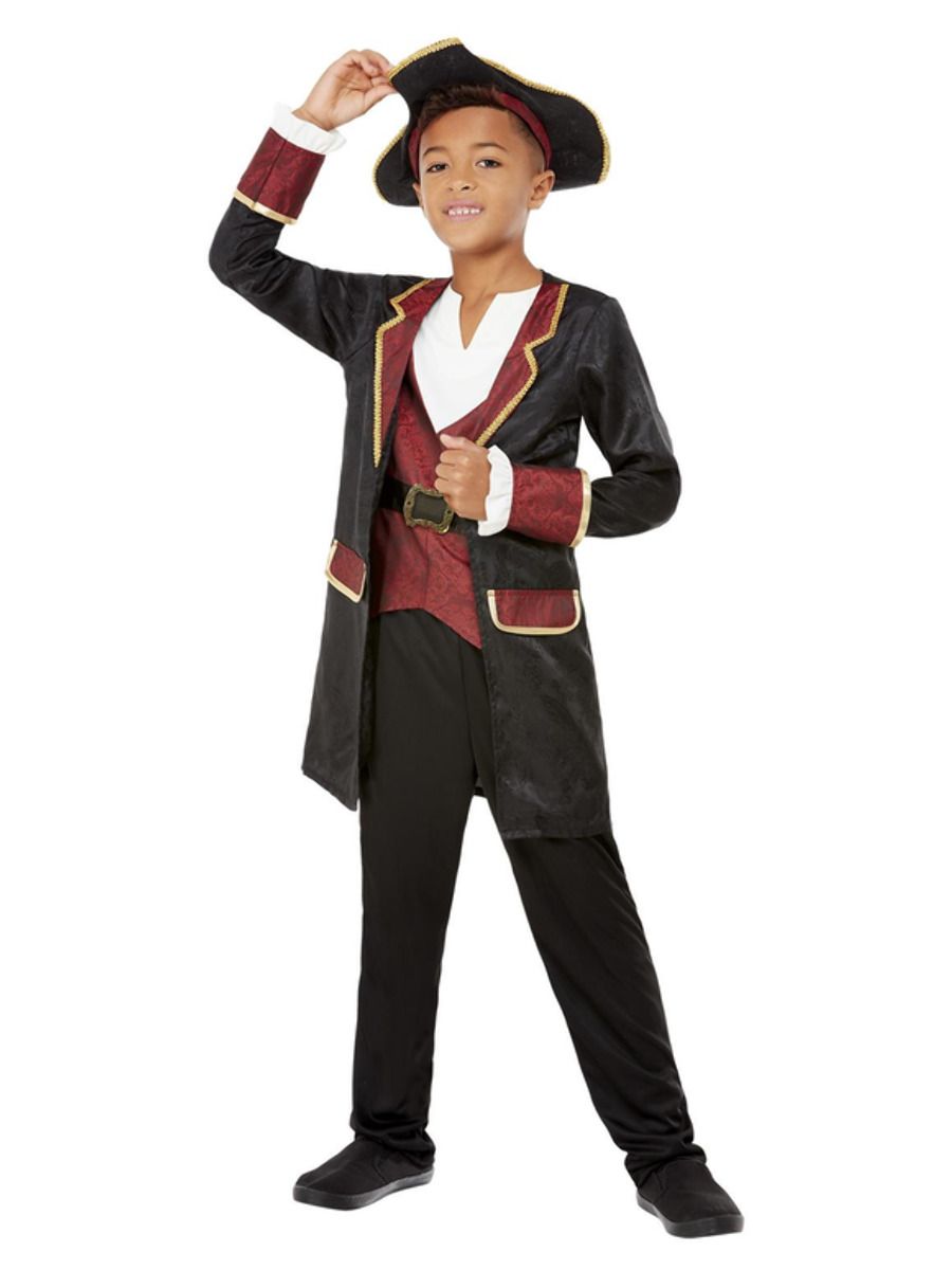 This Deluxe Swashbuckler Pirate Costume includes a long jacket with attached mock waistcoat and a pair of trousers.