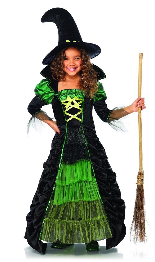 This Tween Storybook Witch costume includes a a long Ruched dress with layered flitter tulle panels and a stand up collar. To complete the look a matching witches hat is also included.